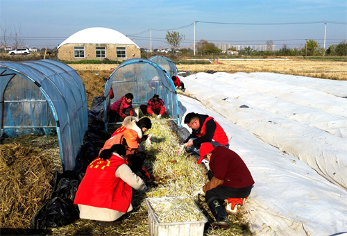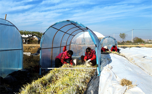 2023年12月1日,安徽省合肥市廬江縣東顧山街道馬店村徐業(yè)武種植家庭農(nóng)場(chǎng)的60畝芹芽基地迎來(lái)采收季,村里的黨員志愿者正在幫助菜農(nóng)采收、分撿芹芽。