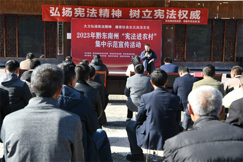 2023年12月7日,貴州省凱里市舟溪鎮(zhèn)曼洞村,黔東南州“憲法進(jìn)農(nóng)村”集中示范宣傳活動現(xiàn)場。(楊仁海 攝)