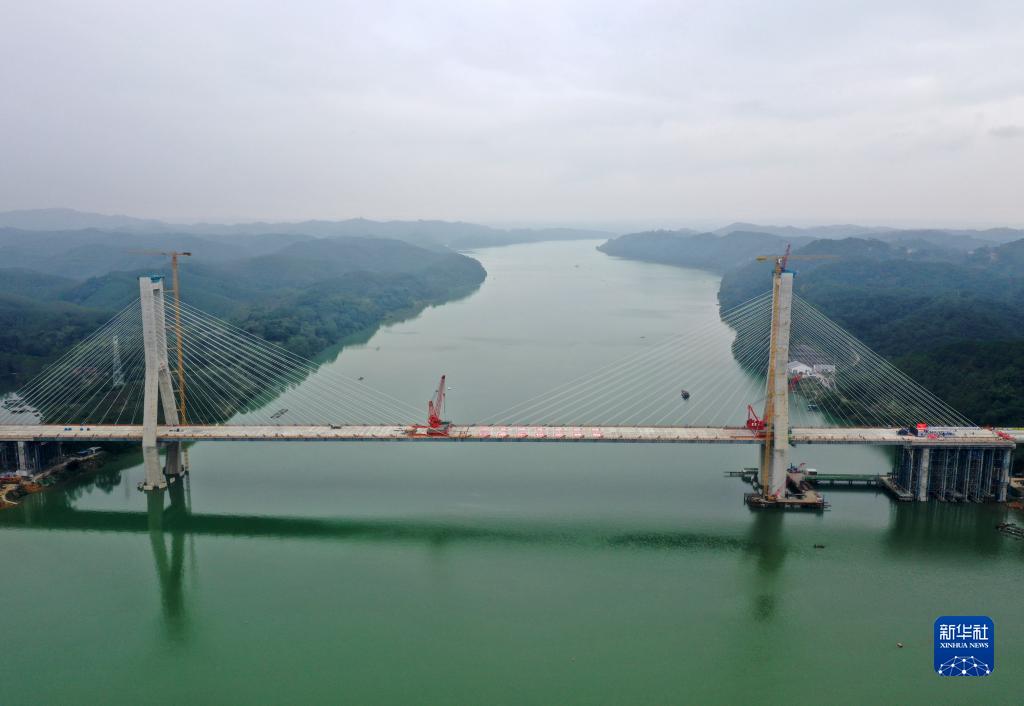 這是合龍后的上橫高速公路西津郁江特大橋(12月10日攝,無人機(jī)照片)。