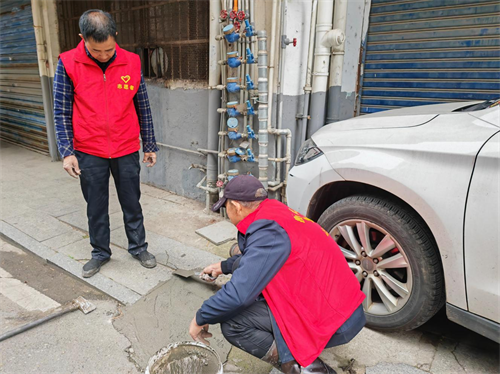 “里巷幫幫”志愿者在整理路面。(唐蘭榮 供圖)