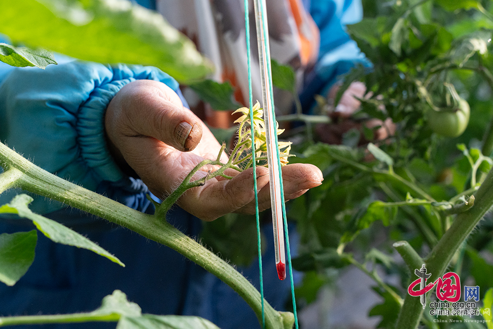 庫里巴哈提告訴記者,她現(xiàn)在負(fù)責(zé)三個大棚的種植,另外兩個棚里種了辣椒和茄子。