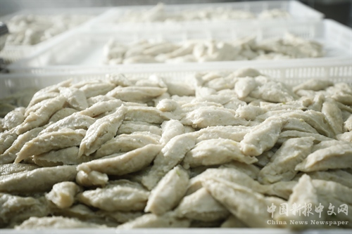 “鮮香四溢,太好吃了!”一位市民迫不及待地拿起一個魚丸子就往口里塞,大快朵頤。該公司負責人鄧楠向記者介紹道,蒸魚丸,“火候”的把握也是個關鍵。“火候”不到,蒸不熟透;時間過長,則會“老化”,魚丸便失去了潔白的光澤和鮮嫩的口感。