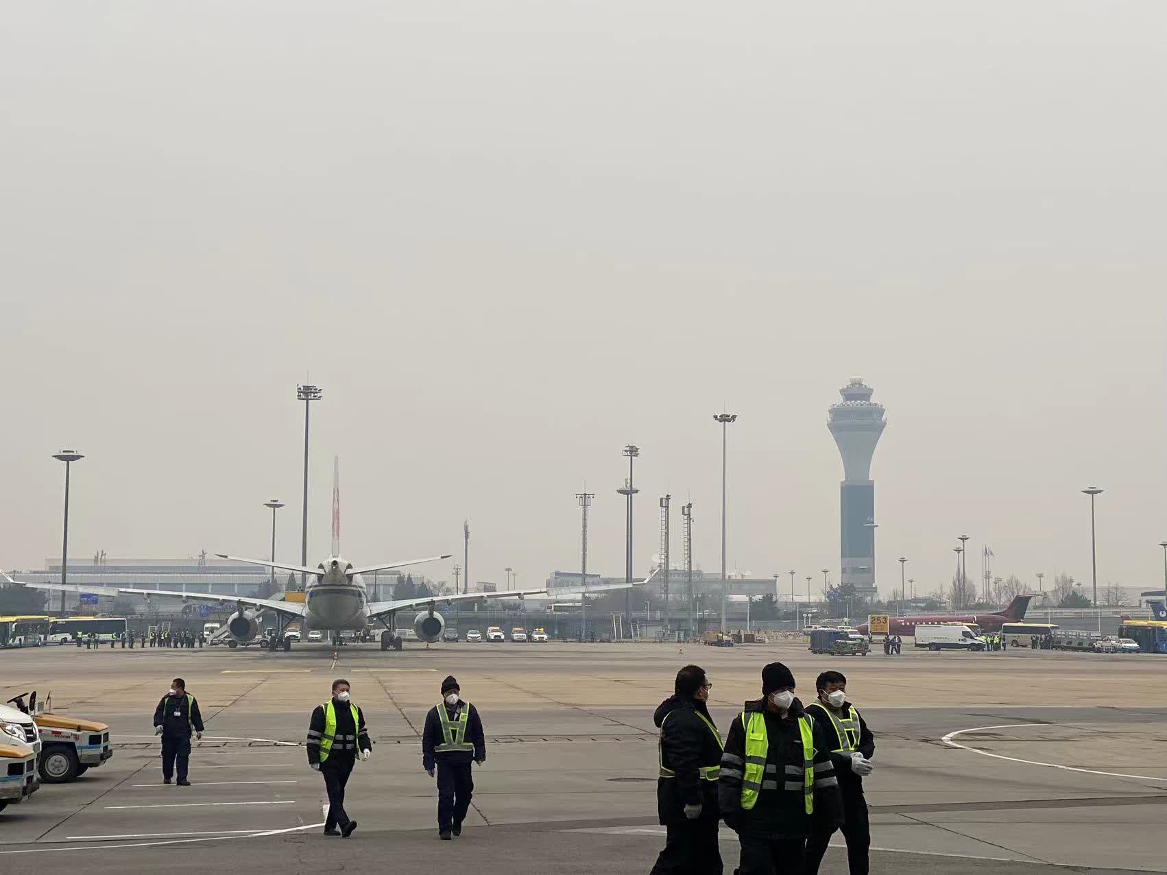 下午四時(shí)多,中國(guó)救援隊(duì)和中國(guó)香港特區(qū)救援隊(duì)乘坐國(guó)航包機(jī)抵達(dá)首都機(jī)場(chǎng)。(大公文匯網(wǎng)記者馬靜攝)
