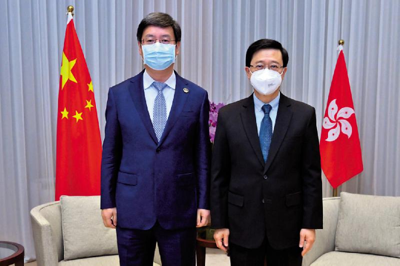 圖:行政長官李家超昨日與深圳市市長覃偉中會面。