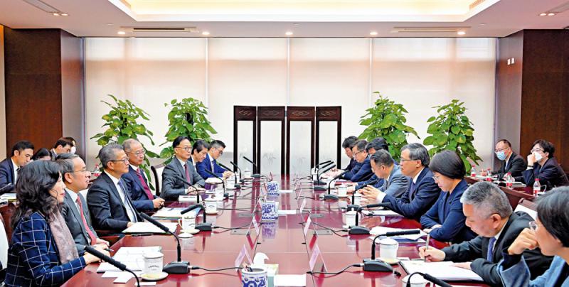 圖:陳茂波昨日結(jié)束訪京行程前,與銀保監(jiān)官員會面。