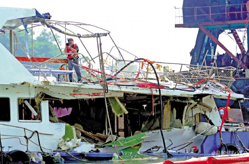 圖:2012年10月,南丫海難發(fā)生后,政府多個部門人員登上被撞沉的“南丫四號”調(diào)查。