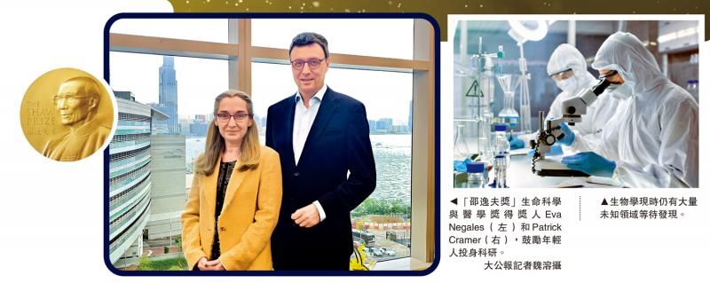 左圖:“邵逸夫獎”生命科學(xué)與醫(yī)學(xué)獎得獎人Eva Negales(左)和Patrick Cramer(右),鼓勵年輕人投身科研。\大公報記者魏溶攝;右圖:生物學(xué)現(xiàn)時仍有大量未知領(lǐng)域等待發(fā)現(xiàn)。