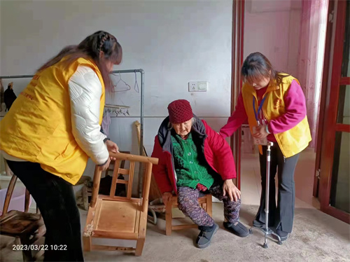 義工們進(jìn)屋放下生活物資米和油后,眼尖的義工宋麥群和栗艷紅看到粟奶奶柱著拐仗,蹣跚著向大家走來時,快步走向前攙扶,以免老人摔跤,扶其椅子上坐好,當(dāng)聽到老人說行動不便,有時飯都吃不上,都是靠熱心鄰居和愛心人士送飯吃和打掃衛(wèi)生,義工肖靈芝馬上插上電飯煲,煮好米飯告知奶奶放在哪個位置,其它人也叮囑奶奶走路需要小心,以免摔跤。奶奶聽了激動不已。在奶奶滿含不舍的目光中結(jié)束了這次慰問活動。