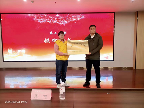 互動環(huán)節(jié)后,長沙縣愛的擺渡人公益發(fā)展中心為三一職院工程機械學(xué)院志愿服務(wù)隊授牌,周龍先生表示,希望之后雙方能深入合作,向劉露、張金華等老師學(xué)習,帶領(lǐng)工程學(xué)子多多參與志愿活動,以實際行動踐行雷鋒精神。