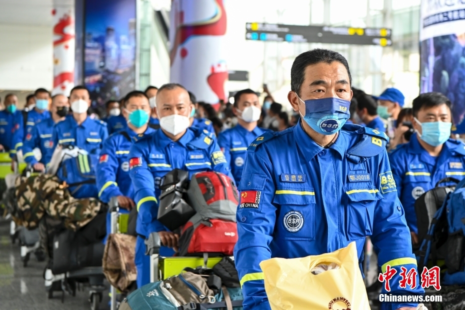 2月19日,廣東省廣州市,藍天救援隊赴土耳其隊員抵達廣州白云機場。當日,100余名藍天救援隊赴土耳其隊員搭乘CZ8066航班返抵廣州。
