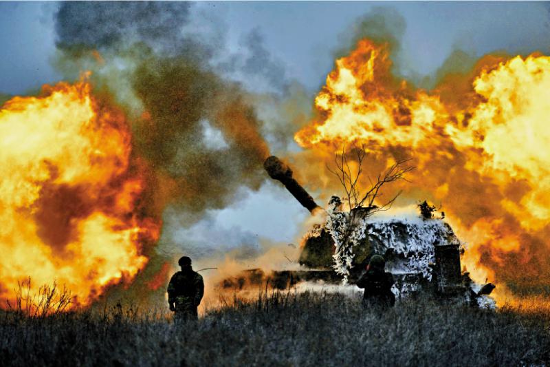 圖:18日,士兵在烏東頓涅茨克前線使用自行火炮開火。\美聯(lián)社