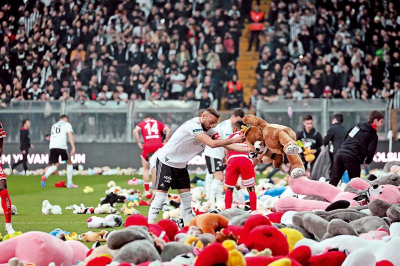 圖:2月26日,球迷在伊斯坦布爾的一場足球賽上投擲玩偶。\路透社