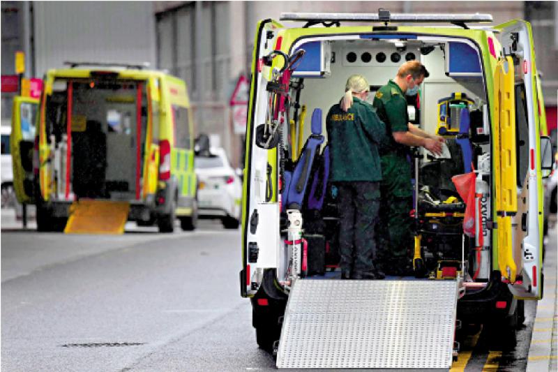 圖:英國醫(yī)務人員抱怨薪酬低、人手少,圖為救護人員在皇家倫敦醫(yī)院外工作。\法新社