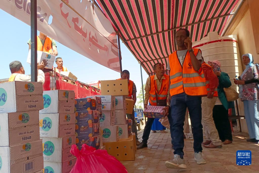5月2日,在埃及南部阿斯旺省,工作人員為逃離蘇丹進(jìn)入埃及的難民準(zhǔn)備物資(手機(jī)拍攝)。