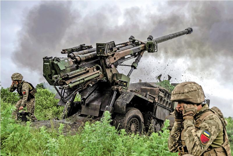 圖:5月31日,烏克蘭士兵在頓涅茨克前線向俄軍發(fā)射榴彈炮。\路透社