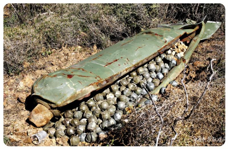 圖:集束彈體內往往裝有數(shù)個至數(shù)百個子炸彈。\美聯(lián)社