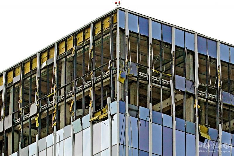 圖:莫斯科利哈喬夫大街上一處商業(yè)中心遭無(wú)人機(jī)襲擊。\法新社