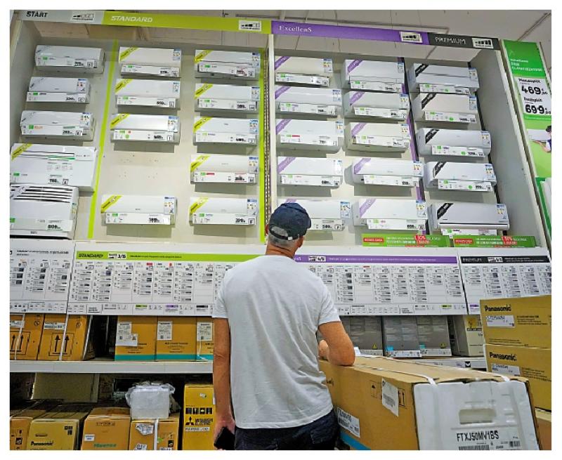 圖:羅馬一名男子在百貨商場選購空調(diào)。\美聯(lián)社