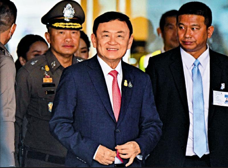 圖:泰國前總理他信22日抵達曼谷廊曼機場。\法新社