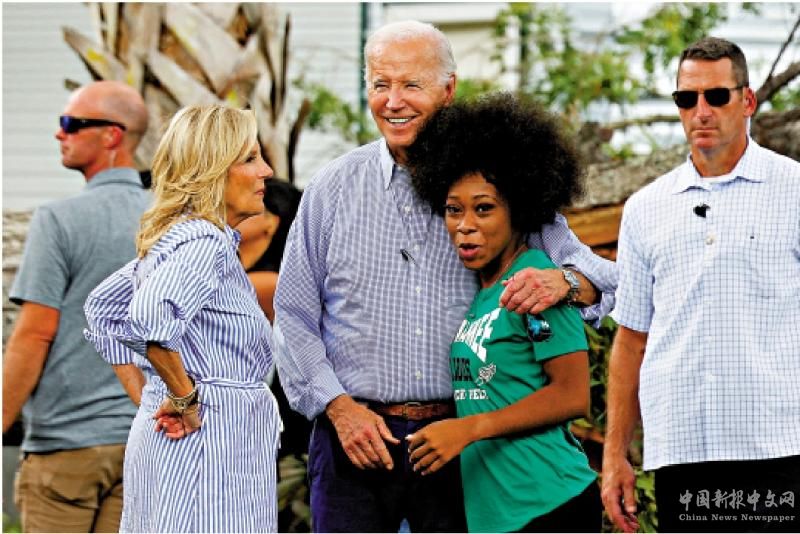 圖:第一夫人吉爾(前排左一)2日陪同拜登前往佛州視察災(zāi)區(qū),4日新冠檢測呈陽性。\路透社