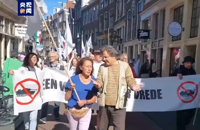 示威民眾呼吁包括荷蘭政府在內(nèi)的西方國(guó)家停止在俄烏沖突中拱火,盡快通過(guò)政治外交途徑解決危機(jī)。