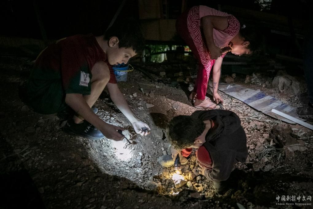 阿布高什村有著悠久的人類定居史,在多數(shù)村民的記憶中,這里從未受到過火箭彈的襲擊。在火箭彈炸出的深坑中,小朋友在夜色中尋找火箭彈的碎片。