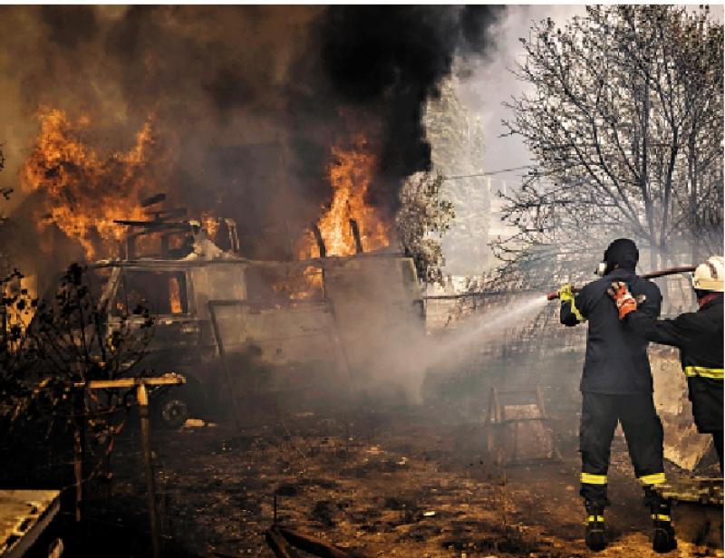 圖:今年夏天異常炎熱,圖為希臘消防員8月在雅典北部滅火。\法新社