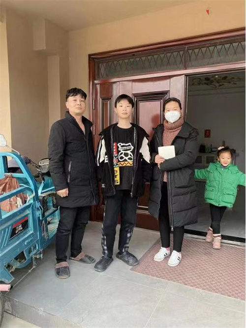 “感謝幾位老師來(lái)家訪,讓我知道孩子在學(xué)校的學(xué)習(xí)生活情況,謝謝老師們平時(shí)對(duì)他的悉心教導(dǎo)......”兔年春節(jié)前夕,湖北省荊門(mén)市掇刀區(qū)麻城中學(xué)九(二)班學(xué)生陳書(shū)祥家長(zhǎng)激動(dòng)地對(duì)前來(lái)家訪的兩位老師說(shuō)。