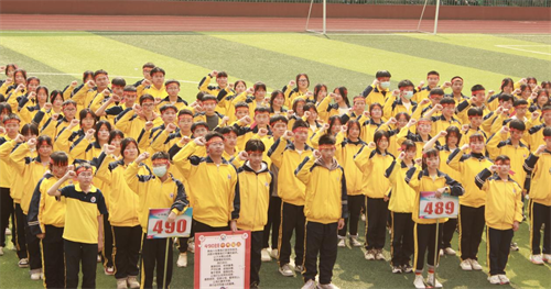 在激昂的音樂聲中,肖書記和胡校長為初三、初二年級授旗,在老師的帶領下初三、初二全體學生有秩地跑過象征成功的勝利門與凱旋門。整齊的步伐、自信的笑容、昂揚的斗志,展現(xiàn)了同學們的決勝中考的信心。隨后,校領導為各班頒發(fā)承諾書,并現(xiàn)場簽名。