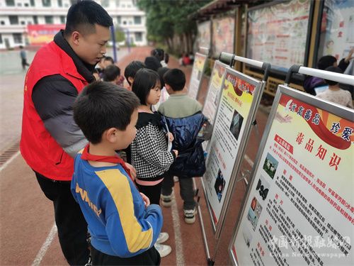 活動現(xiàn)場,工作人員通過展板展示等形式,向老師、同學(xué)們詳細(xì)地講解毒品的含義、種類、特征,介紹了青少年涉毒、吸毒的誘因和禁毒相關(guān)法律法規(guī),并講述了未成年人涉毒違法犯罪的真實案例,勸誡學(xué)生千萬不要因一時好奇而陷入毒品的泥沼。志愿者發(fā)放禁毒宣傳資料,要求學(xué)生們把宣傳資料帶回家向家長宣傳毒品知識,爭做禁毒的小小宣傳員,共同營造禁毒宣傳人人參與的良好氛圍。