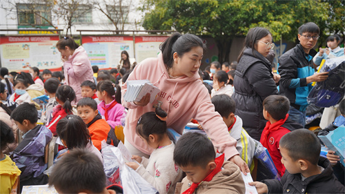 三江口瑤族鎮(zhèn)小學(xué)共有6個年級、176名學(xué)生,其中有相當(dāng)一部分為留守兒童?;顒又?,縣鄉(xiāng)干部、愛心企業(yè)家、社工等親手為孩子們送上了一份“愛心禮包”,包括書包、文具、學(xué)習(xí)資料等,收到禮物的學(xué)生個個臉上都露出了開心的笑容。同時,現(xiàn)場還開展了“防性侵、防溺水、防校園霸凌及未成年人保護法”等知識宣傳,讓學(xué)生們更好懂得保護自己。
