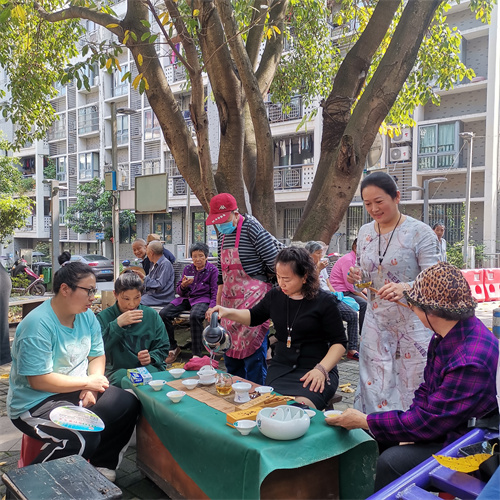 來自南坪德之緣茶舍的工作人員給大家現(xiàn)場沖泡了荒野紅茶。黃色的茶湯在陽光下泛起金光,居民喝著甜美可口的茶,翻著書、聊著天,洋溢著喜悅之情,讀書陶冶了情操,品茶提高了品味。    (特約記者 ???通訊員 劉洋)