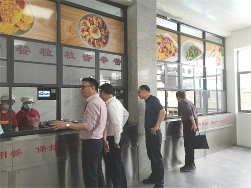 ▲實(shí)地了解校食堂文化建設(shè)情況