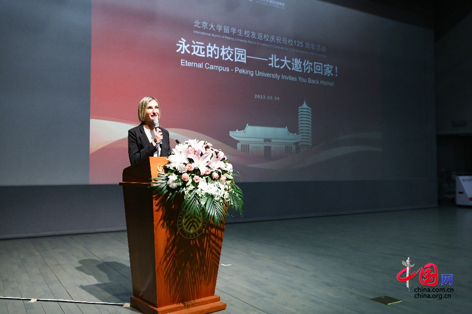 中國網(wǎng)訊 (記者 佟明月)2023年5月4日下午,以“永遠(yuǎn)的校園——北大邀你回家!”為主題的北京大學(xué)留學(xué)生校友返校慶祝母校125周年活動(dòng)在百周年紀(jì)念講堂舉行。來自全球15個(gè)國家地區(qū)的留學(xué)生校友、在校留學(xué)生、校外嘉賓及校內(nèi)院系和職能部門師生代表歡聚一堂。