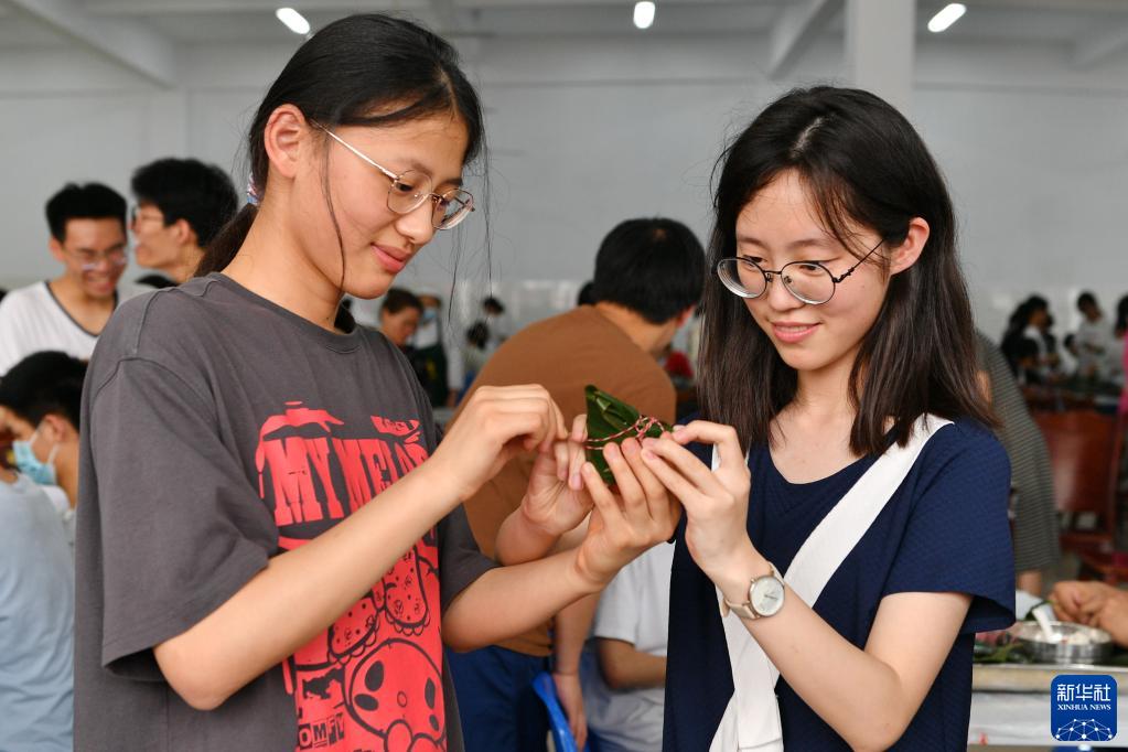 5月28日,在江蘇省常州市北郊高級中學(xué),高三學(xué)生在包粽子。