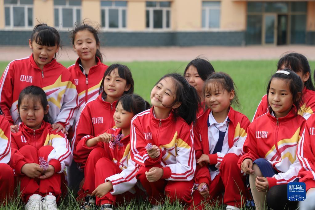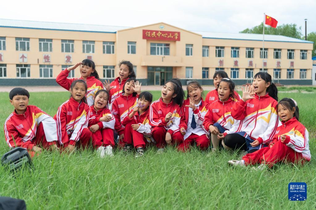 5月29日,在安達市任民鎮(zhèn)中心小學(xué)校園的草坪上,音樂班的孩子在練習(xí)合唱。