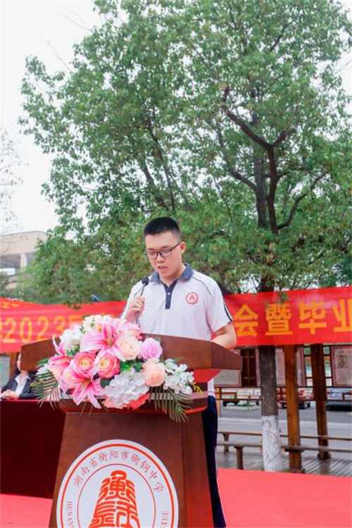 接著,高三賀裕涵家長作為家長代表在畢業(yè)典禮中致辭,他勉勵(lì)孩子們長大意味著責(zé)任,意味著擔(dān)當(dāng),高考在即,更應(yīng)該穩(wěn)住心態(tài),堅(jiān)持不懈。他對孩子們的長大成人表達(dá)了欣慰與感嘆,也對衡鋼中學(xué)全體高三教師三年的不斷付出表達(dá)了衷心的感謝,最后他為高三學(xué)子加油打氣送上了祝福。