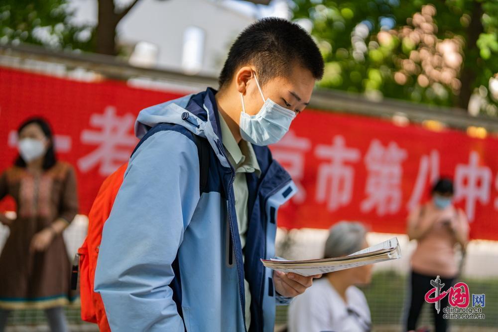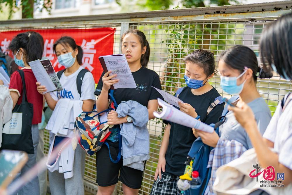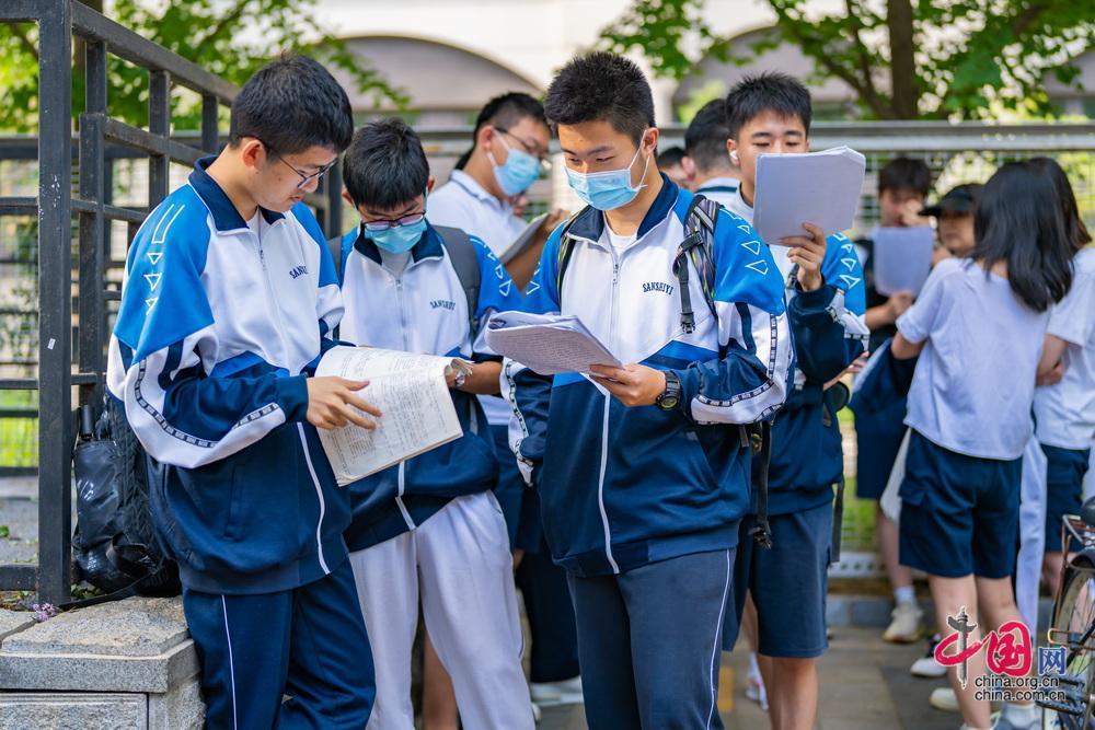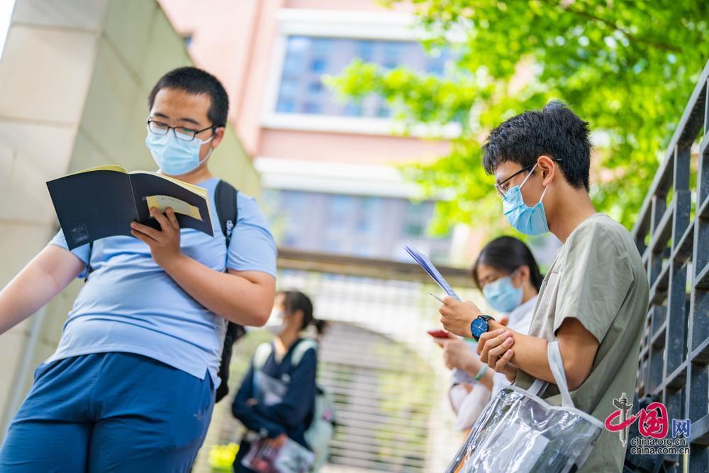 2023年6月7日,北京八中考點(diǎn),考生在考場外復(fù)習(xí)。中國網(wǎng)記者 鄭亮攝