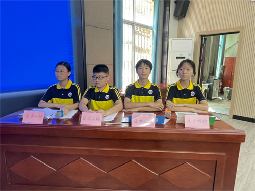 2023年6月27日上午,由衡陽市第三中學(xué)(衡鐵一中初中部)承辦的衡陽市第三屆中小學(xué)思政辯論賽珠暉賽區(qū)初中組小組賽在廣德樓一樓大會議室舉行,本次辯論賽參賽隊(duì)伍分別來自衡陽市三中和珠暉區(qū)一中,特邀衡陽市鐵一中語文教師周晴、祝燕和歷史教師林澄宇擔(dān)任評委,衡陽市三中校長胡春輝、副校長吳偉生、工會主席肖洪、副校長周丞、紀(jì)檢員王雨晴以及珠暉區(qū)一中校長李建波、副校長胡紅艷、呂琛等多位領(lǐng)導(dǎo)出席本場辯論賽,衡陽市三中教師袁艷擔(dān)任主持人。