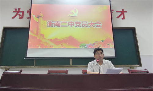 7月3日晚,衡南二中在大多媒體教室召開黨員大會(huì)。全體黨員、預(yù)備黨員、入黨積極分子身著正裝、佩戴黨徽參加會(huì)議,會(huì)議由黨委書記朱斌主持。