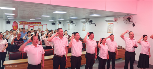 大會(huì)在莊嚴(yán)的國(guó)歌聲中拉開(kāi)序幕。隨后,新黨員進(jìn)行入黨宣誓,老黨員也一起重溫了入黨誓詞。