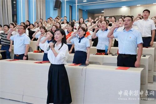 “我志愿成為一名人民教師,忠誠(chéng)黨的教育事業(yè),遵守教育法律法規(guī),履行教書(shū)育人職責(zé),引領(lǐng)學(xué)生健康成長(zhǎng)......”9月8日下午,湖北省荊門(mén)市掇刀區(qū)軍馬場(chǎng)學(xué)校全體教師在教師節(jié)慶?;顒?dòng)上重溫《教師誓言》。