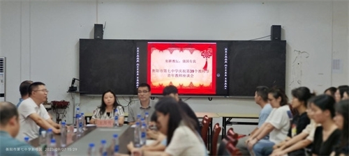 丹楓迎秋,橙黃橘綠。為慶祝第39個(gè)教師節(jié),充分發(fā)揮青年人的活力和聰明才智,號召青年教師在學(xué)校的發(fā)展中積極進(jìn)取,努力為國家教育事業(yè)增磚添瓦、勇挑重?fù)?dān),衡陽市七中于9月7號下午在青年之家召開“躬耕教壇 強(qiáng)國有我”青年教師座談會,由費(fèi)少忠書記主持,特邀衡陽市教育局副局長譚小華,衡陽市教育局組干科科長高坤云、衡陽市教育局計(jì)財(cái)科科長周崇玖,衡鋼中學(xué)副書記劉鵬為嘉賓,校領(lǐng)導(dǎo)班子與全體青年教師共同參會。