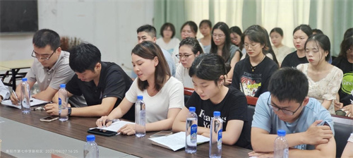 教務(wù)處主任楊雅茹老師說,“······敬業(yè)是關(guān)鍵,要想激勵(lì)我們的娃兒們,那就首先要激自己吧,講不好的課我拿更多時(shí)間來備課,不聽話的學(xué)生我就推心置腹奉日以行,練不會的題,我就反復(fù)示范一遍遍解答······請?jiān)试S我代表我校青年教師莊嚴(yán)地表示,我們絕不辜負(fù)組織的期望,永遠(yuǎn)牢記七中人的教育使命,再接再厲,以實(shí)際行動證明自己無愧于一名黨員同志。”