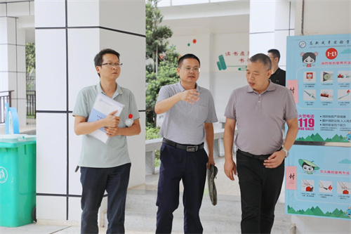 9月12日下午,高新區(qū)教育文化服務(wù)中心黨委委員、工會(huì)主席尹水成,教育發(fā)展科科長(zhǎng)劉偉鵬,教育發(fā)展科督教股股長(zhǎng)曹琳一行蒞臨高新成章實(shí)驗(yàn)學(xué)校進(jìn)行2023年秋季開學(xué)工作檢查。高新成章實(shí)驗(yàn)學(xué)校校長(zhǎng)屈揚(yáng)及全體領(lǐng)導(dǎo)班子陪同檢查。