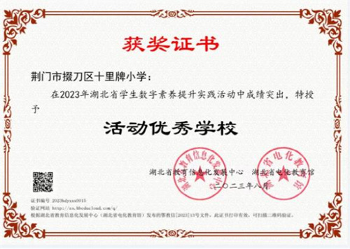 四是積極參加湖北省信息素養(yǎng)提升實踐活動。湖北省數(shù)字素養(yǎng)提升實踐活動由省教育廳省電教館主辦,是湖北省內(nèi)唯一由教育主管部門主辦的科技賽事,分為數(shù)字創(chuàng)作、計算思維、科創(chuàng)實踐等,旨在在創(chuàng)新、分享過程中鍛煉學(xué)生的勞動實踐能力,培養(yǎng)探究精神,提升數(shù)宇素養(yǎng)。在2023年“全國信息素養(yǎng)提升活動、湖北省信息素養(yǎng)提升活動中,該校共上傳25件作品,均為學(xué)生完全原創(chuàng)及自主研發(fā),其中有10件作品榮獲省一等獎,6件作品榮獲省二等獎,5件作品榮獲省三等獎。最終,該校被授予活動優(yōu)秀學(xué)校。該校已連續(xù)兩年獲得此項榮譽。