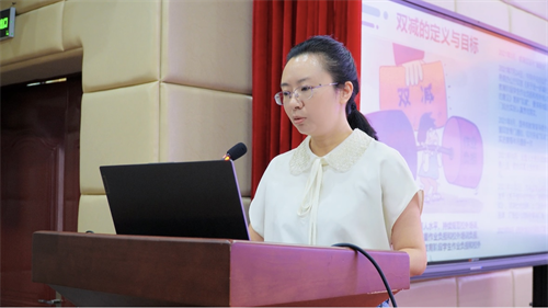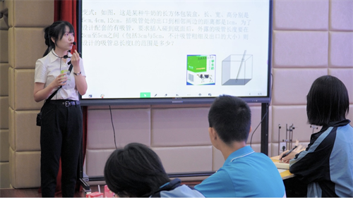 開班儀式結束后,衡陽市實驗中學毛藍潔老師給大家?guī)砹艘惶卯惒始姵实臄祵W課——勾股定理的應用。本堂課上,教師的教學條理清晰、教態(tài)自然親和,學生的上課積極性高,善于通過實踐去發(fā)現數學的奧秘。緊接著,衡陽市實驗中學劉曼云老師就毛藍潔老師的課進行了深刻點評,并開展了以“雙減背景下有效的作業(yè)設計”為主題的講座。講座內容與時事密切相關,為作業(yè)設計提供了許多創(chuàng)新思路。