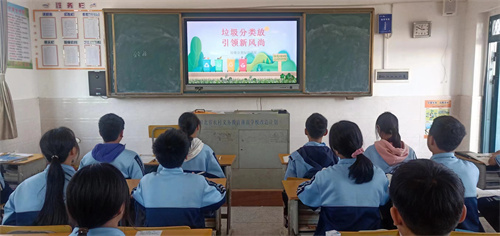 該校充分利用電子顯示屏循環(huán)播放,充分利用了學校宣傳設施,讓學生了解垃圾分類的必要性和重要意義,營造濃厚的校園文化氛圍。老師對垃圾分類的志愿者進行專題教育,講解了垃圾分類箱的使用和注意事項,提高了學生們的思想認識。班會課上,班主任圍繞生活垃圾分類相關知識以及推行生活垃圾分類的必要性、緊迫性等內容,通過PPT課件和動畫片等形式細致講解日常與學生息息相關的生活垃圾分類知識,加深了學生們對如何進行生活垃圾分類等內容的認識,切實提高學生們垃圾分類的意識,引導學生們在生活中要從小養(yǎng)成自覺分類的好習慣,保護好美麗的家園。