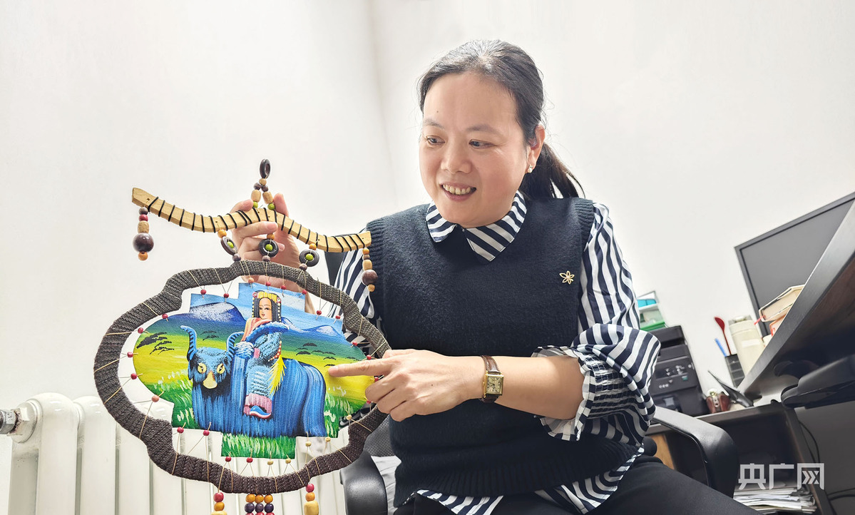 凌麗君介紹藏族學(xué)生送她的禮物(央廣網(wǎng)記者 朱冠安 攝)