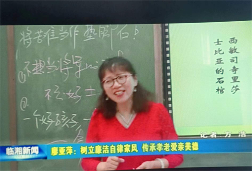 在風景優(yōu)美的臨湘市職業(yè)中專校園里,我們采訪了該校語文老師廖亞萍。她深邃的目光,敏捷的才思,儒雅的談吐給我們留下了深刻的印象。廖亞萍現(xiàn)任臨湘市職業(yè)中專教科室主任。執(zhí)教36年來,廖老師那德才兼?zhèn)涞娜烁聍攘?象春風,似雨露,無聲地滋潤著學子們的心田,贏得了教職員工的崇敬和愛戴。曾獲評“岳陽市優(yōu)秀教師”、“岳陽市高層次人才”、“岳陽市百姓學習之星”、“岳陽市人民政府嘉獎”,獲“湖南省第六屆黃炎培“杰出教師獎”,連續(xù)六次臨湘市人民政府嘉獎。她的事跡先后被《岳陽晚報》、《湖南職教•湘微中職》、《湖南職教就業(yè)•年輕人》、《三湘都市報》、《人民日報·客戶端》等多家媒體報道。